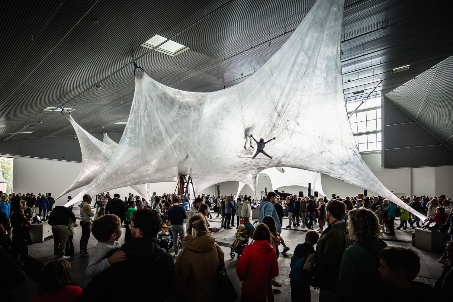 Outside the building’s walls, Bruges also came to life. La Grande Araignée, a monumental spider by the French Compagnie La Machine, gave the city centre a magical touch. John&Jane makes Sense put its weight behind the light and sound direction of platforms and a final show on 't Zand that stunned its audience into silence. The Sleeping Arachnid on 't Zand and its nest in the Visartpark were illuminated in detail. As tightrope walker Lyapunov gracefully bridged the distance between the Belfry and the Church of Our Lady, many spectators' hearts were in their mouths. It was a unique production that spotlit Bruges as a city of art, thanks to Stad Brugge and Brugge Plus.